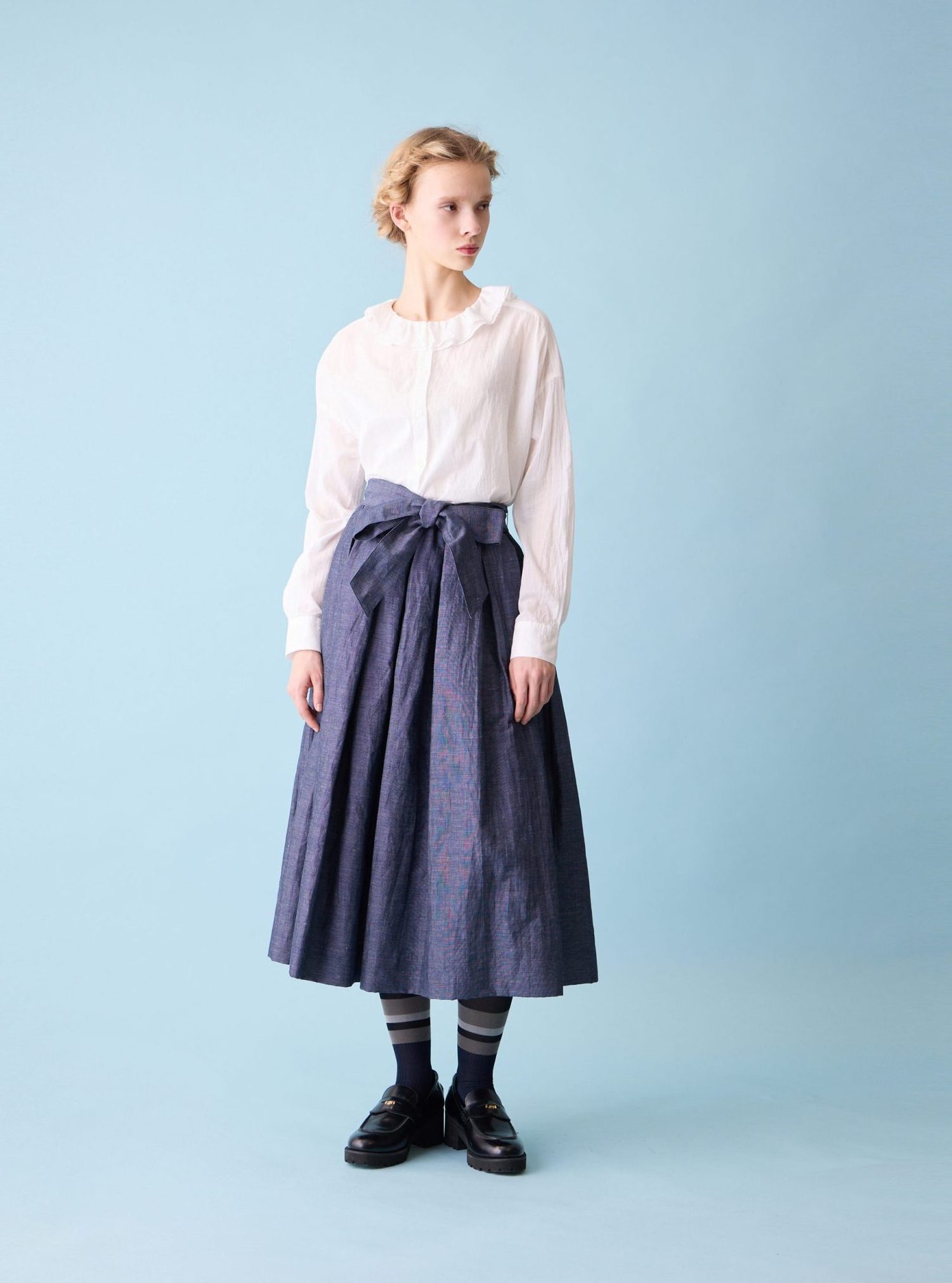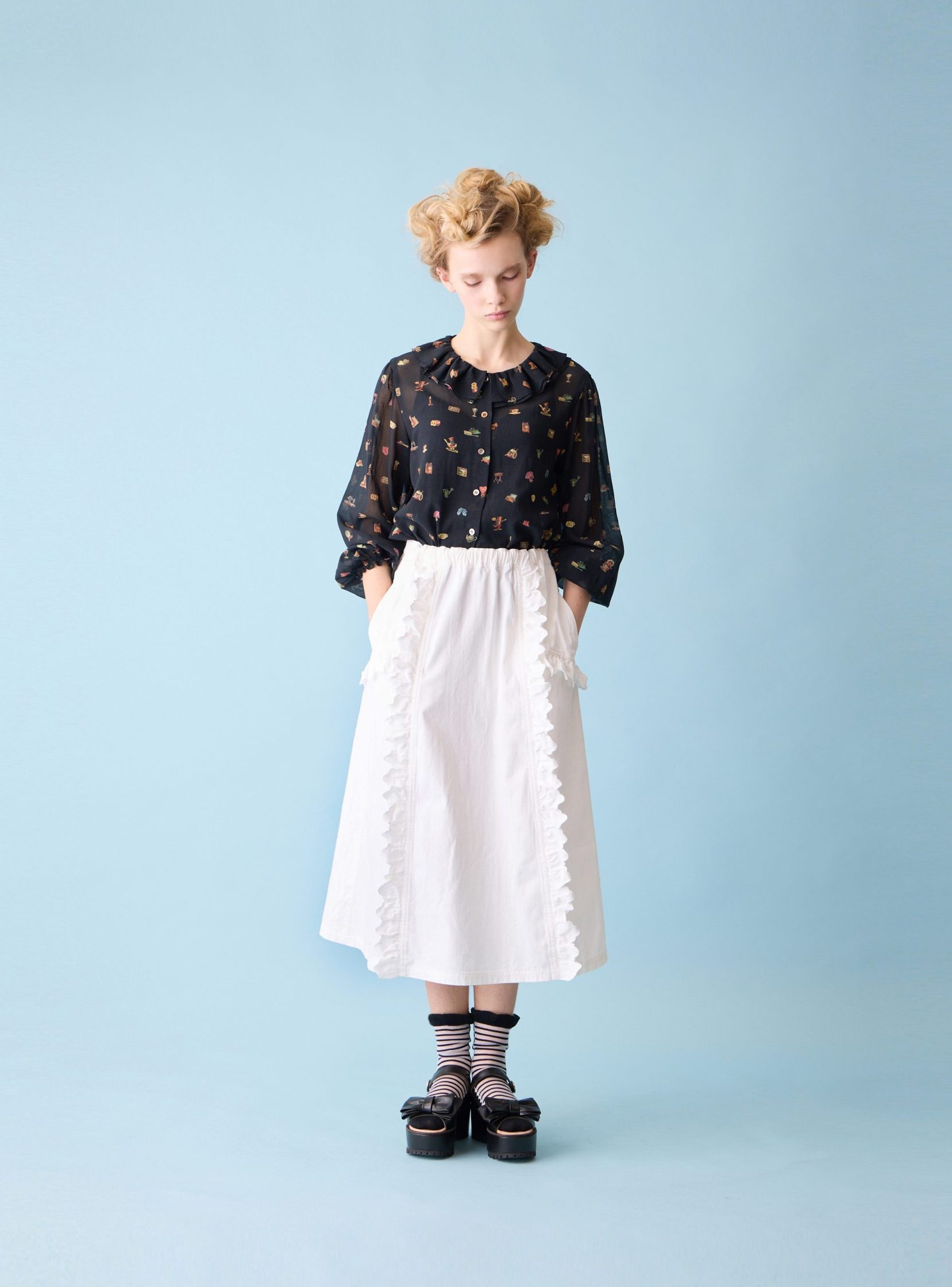 Crepe lawn ruffle collar shirt