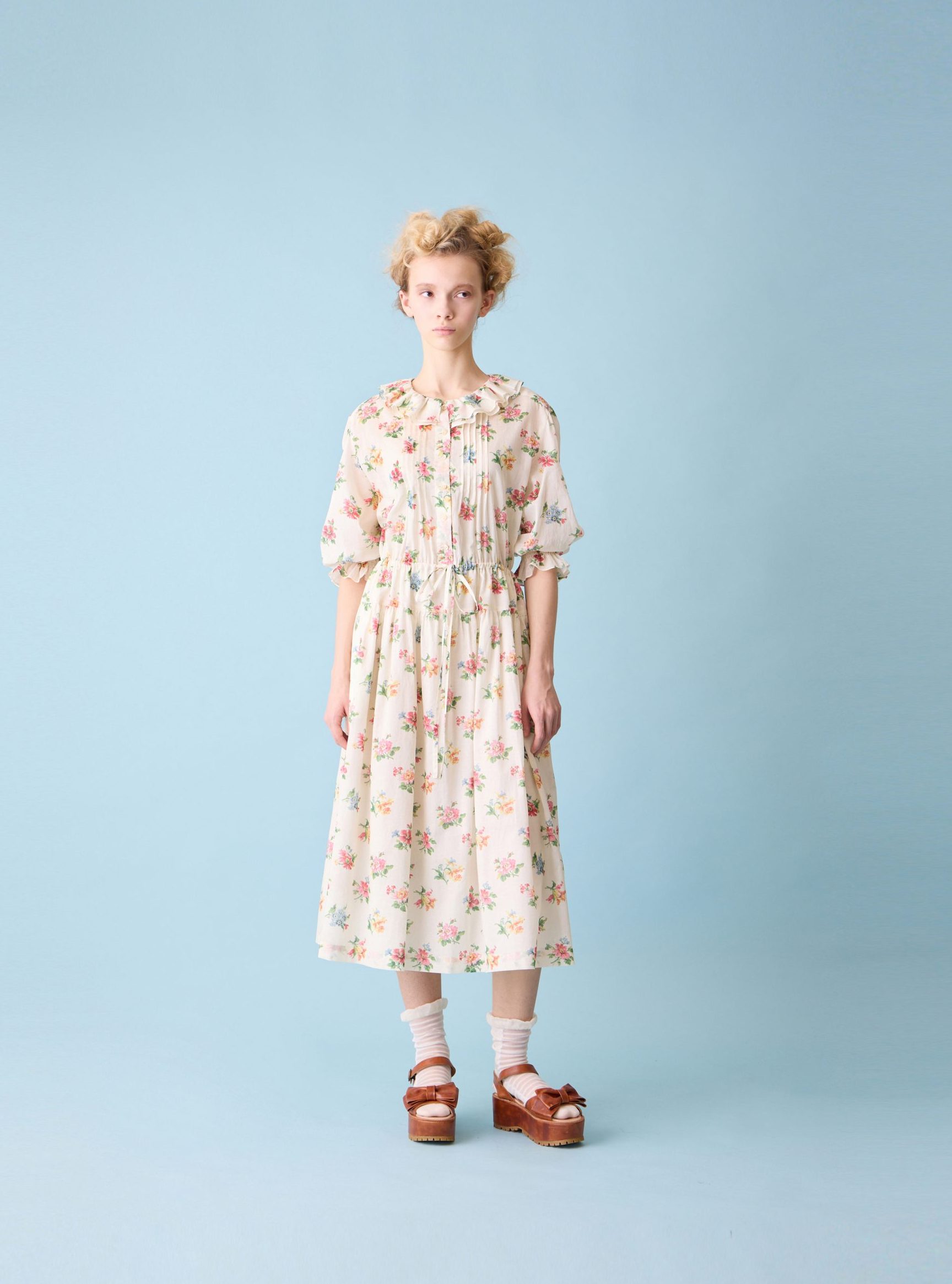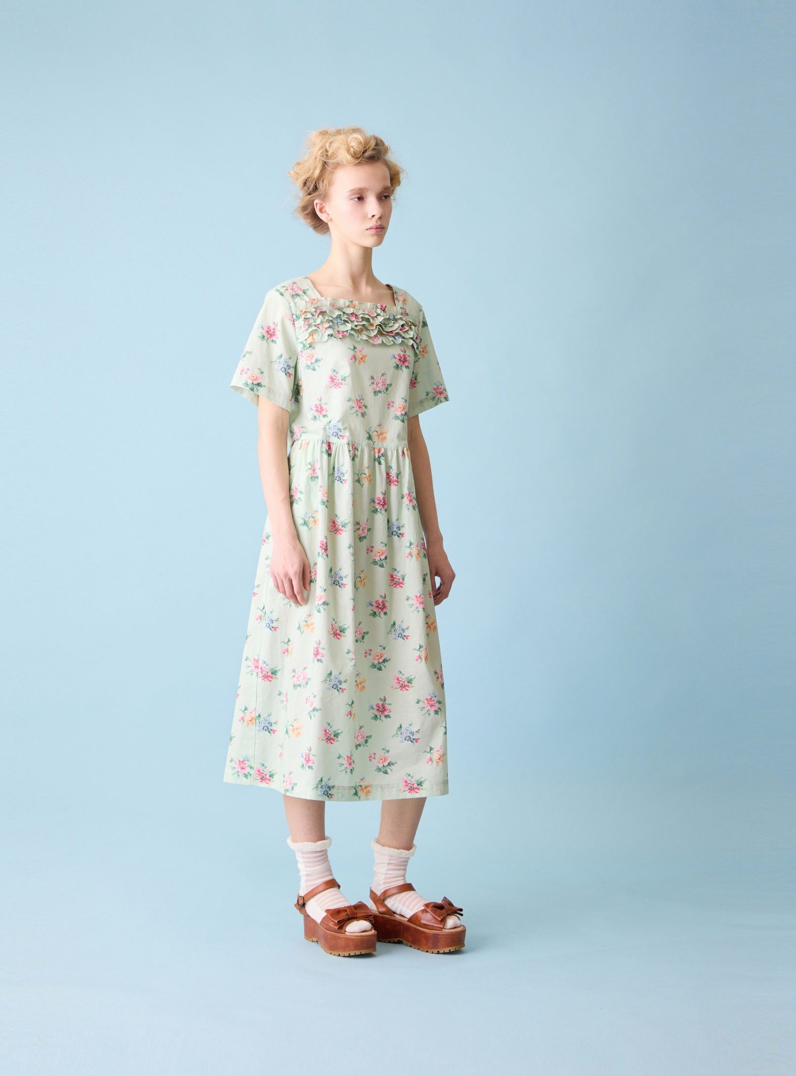 Pottery flora frill-trim dress