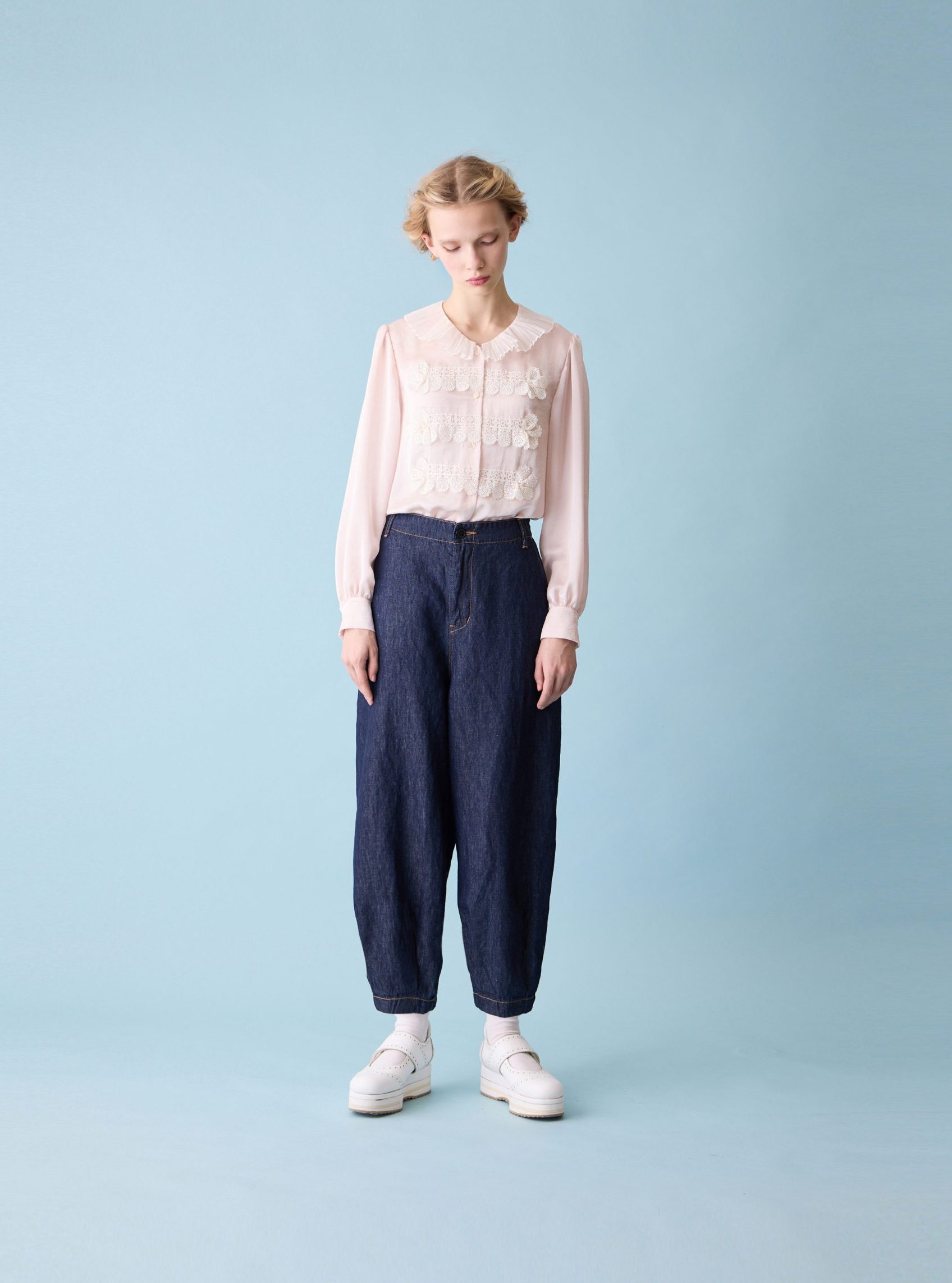 Organic denim balloon pants