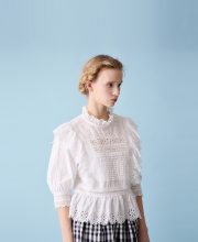 Viscose cotton lace frill blouse