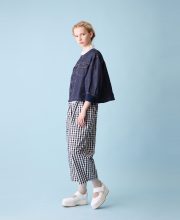 Ripple gingham check barrel pants