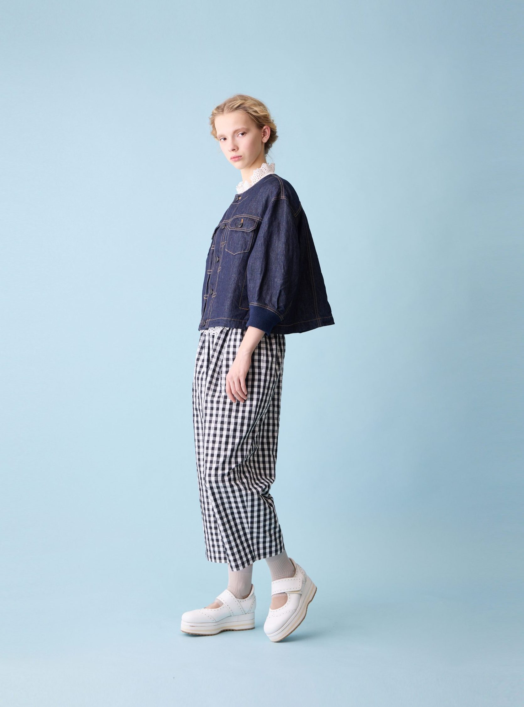 Organic denim scallop-trim jacket