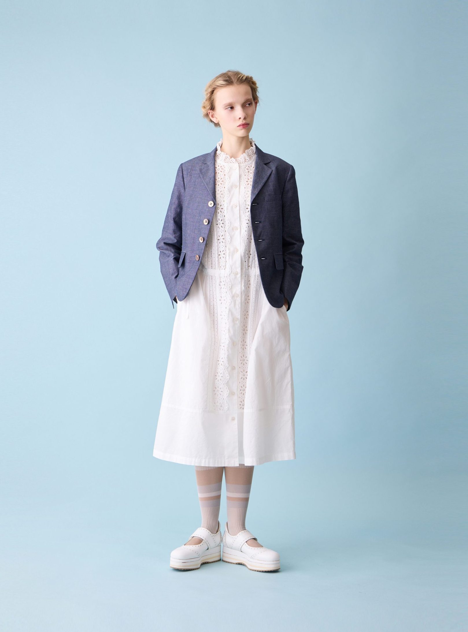 Sheer denim lace-trim dress