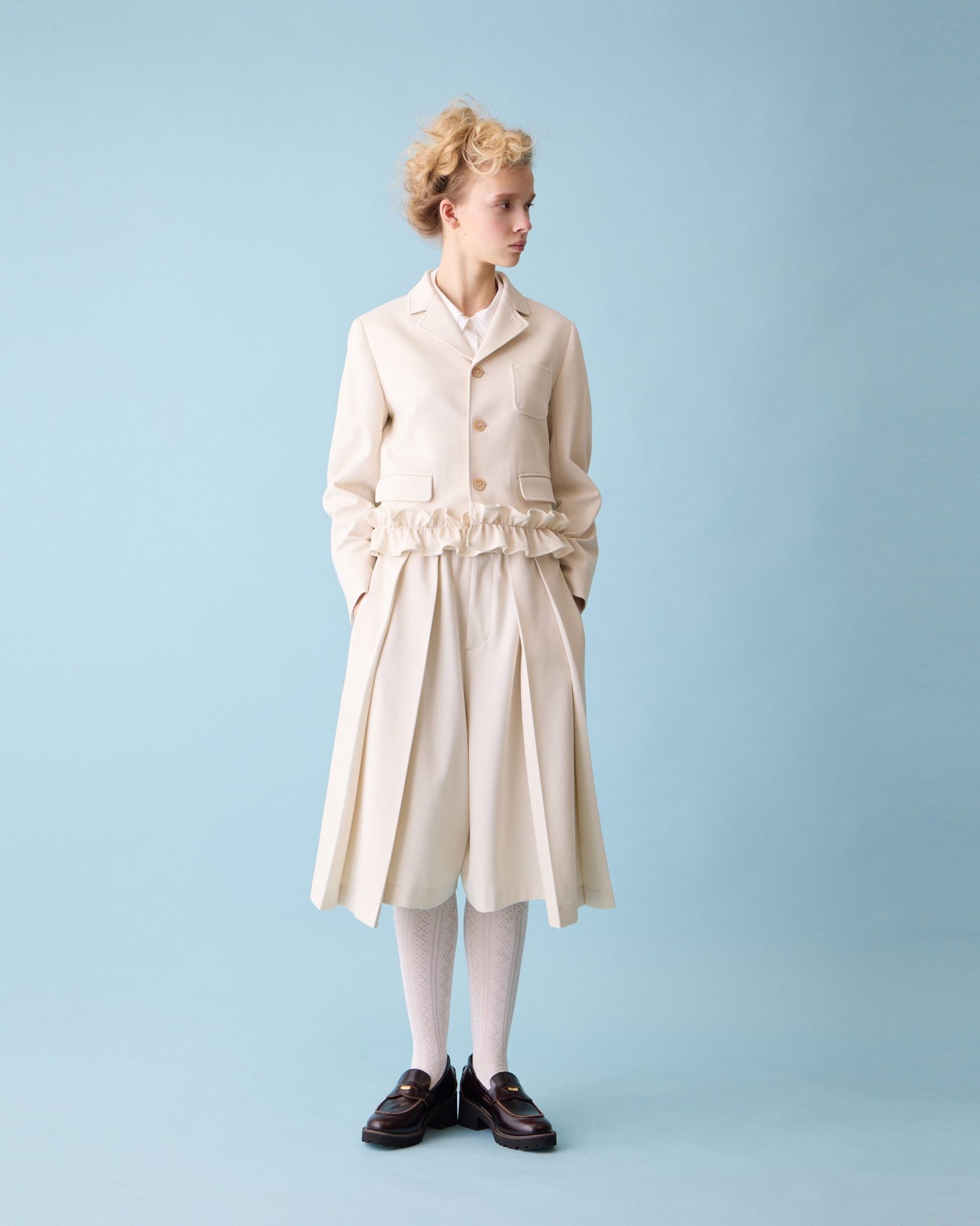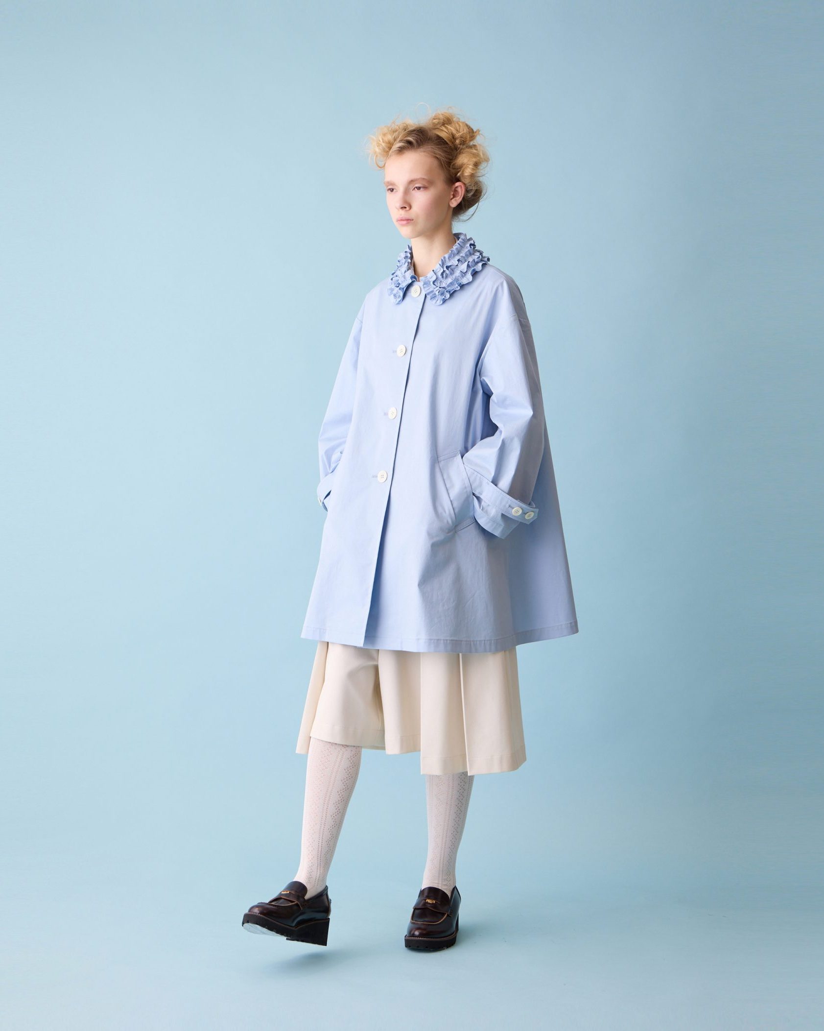Frill collar trapeze coat