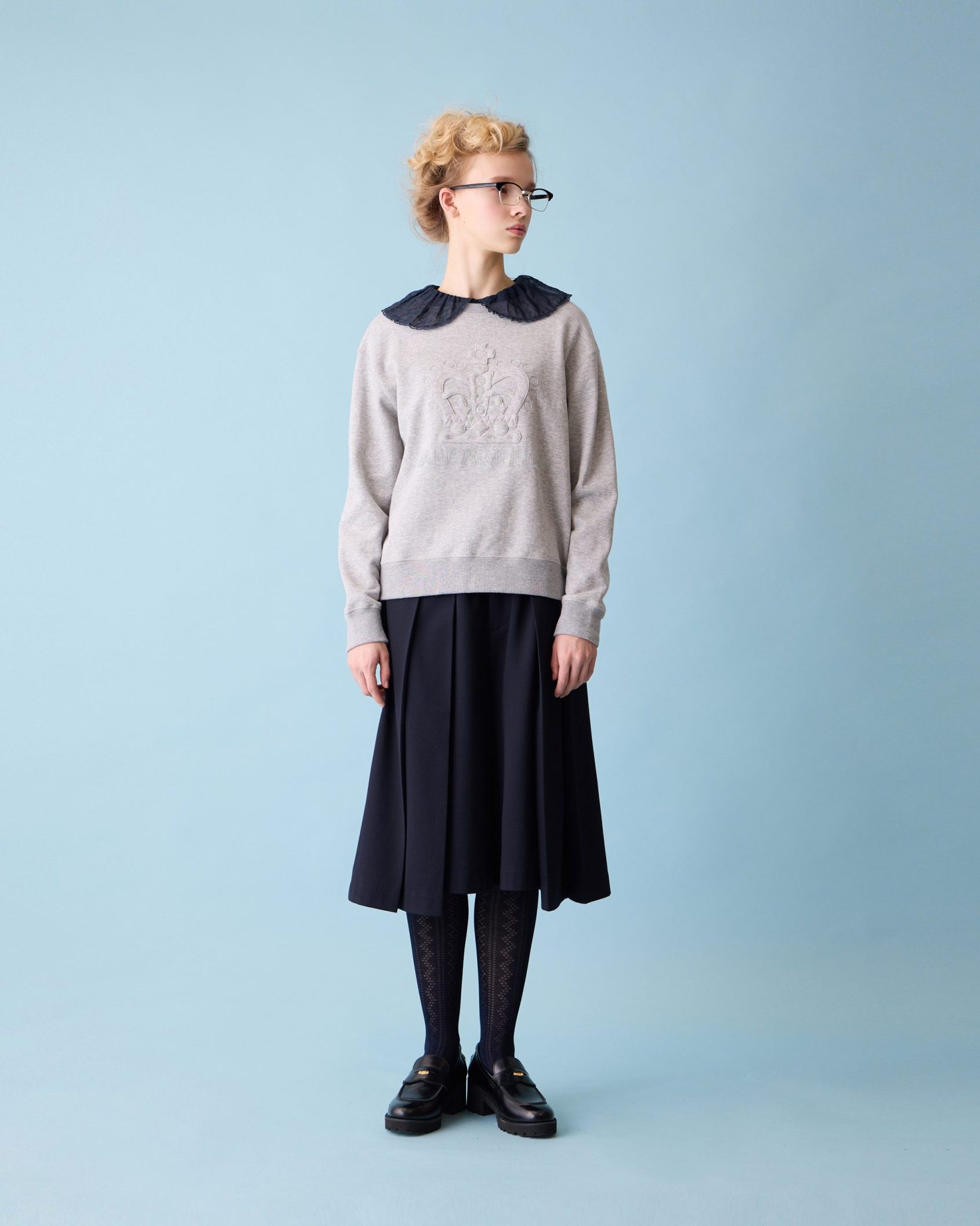 Supima fraise ruffle collar pullover