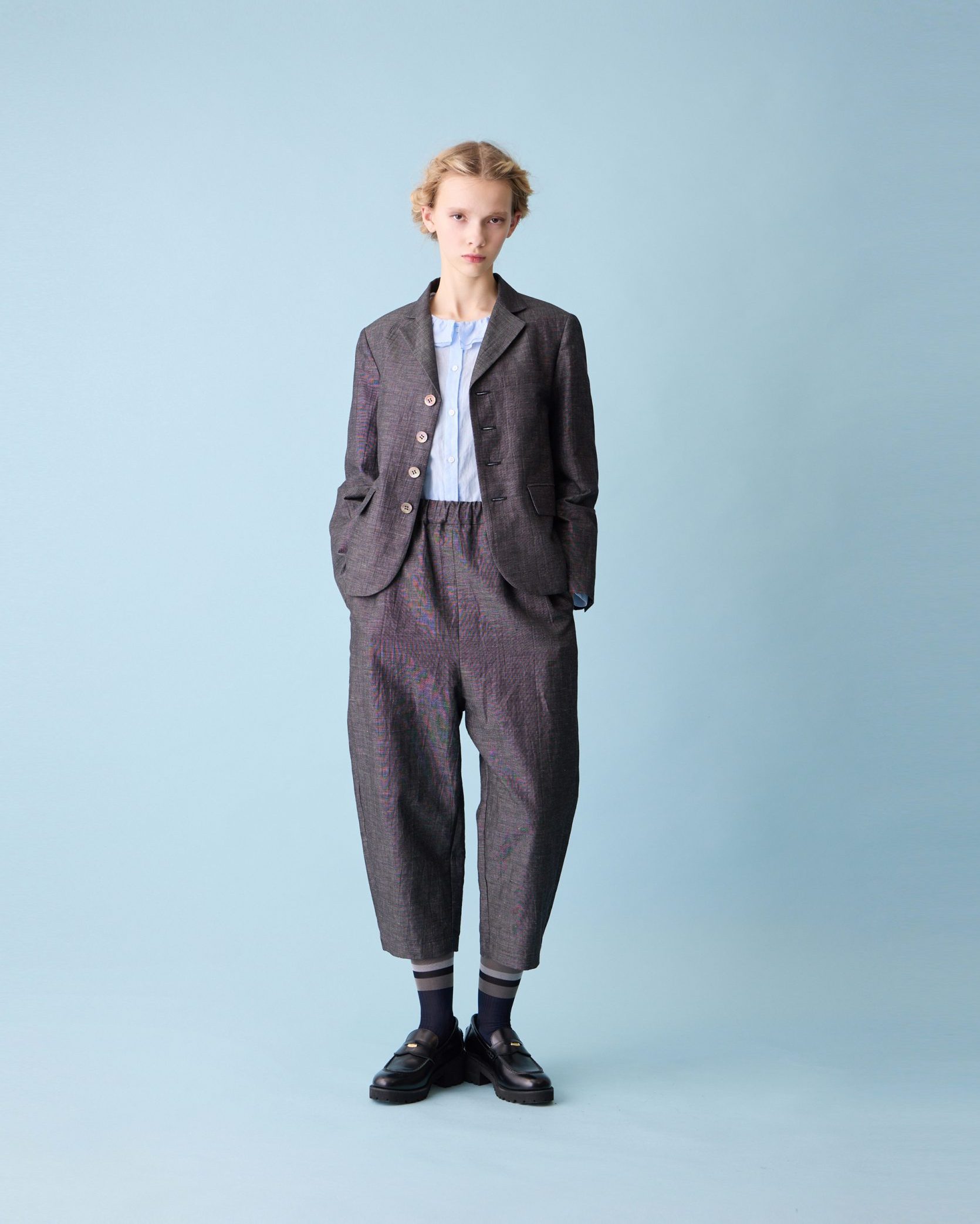 Light denim bubble sleeve blouson