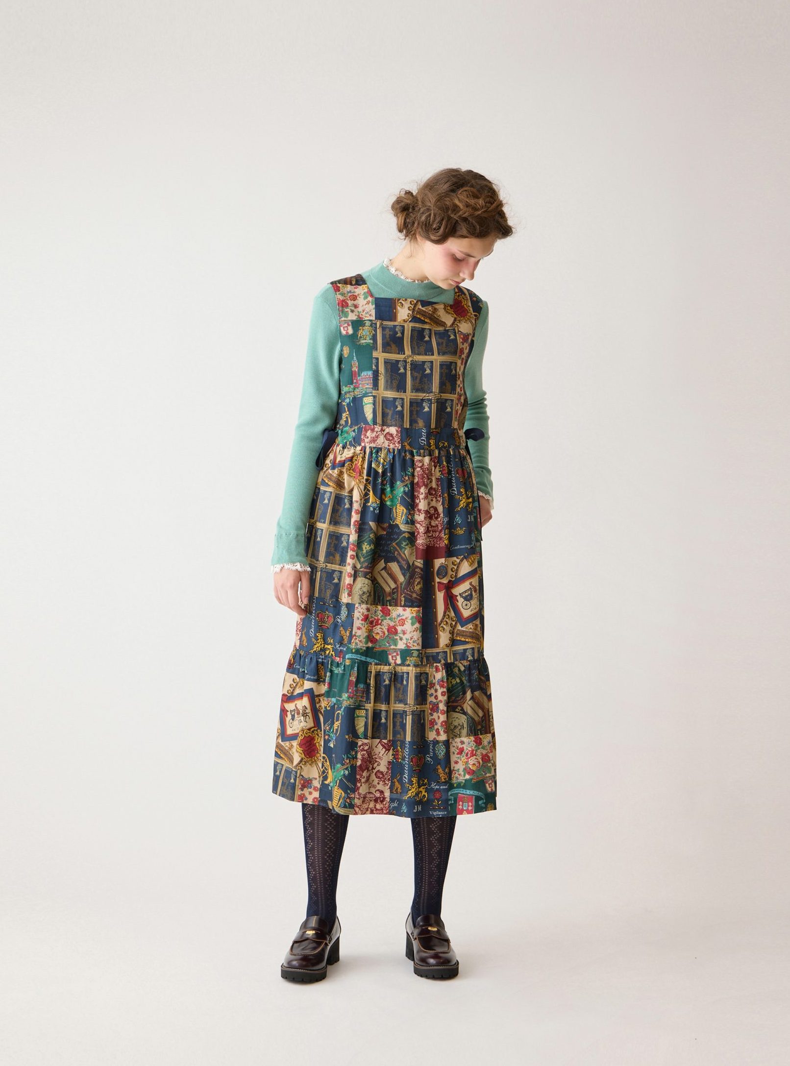 The two types of dresses with full-gathers have a somewhat nostalgic atmosphere, and the skirt of a fun mix of carded wool and British check carries a potent charm.