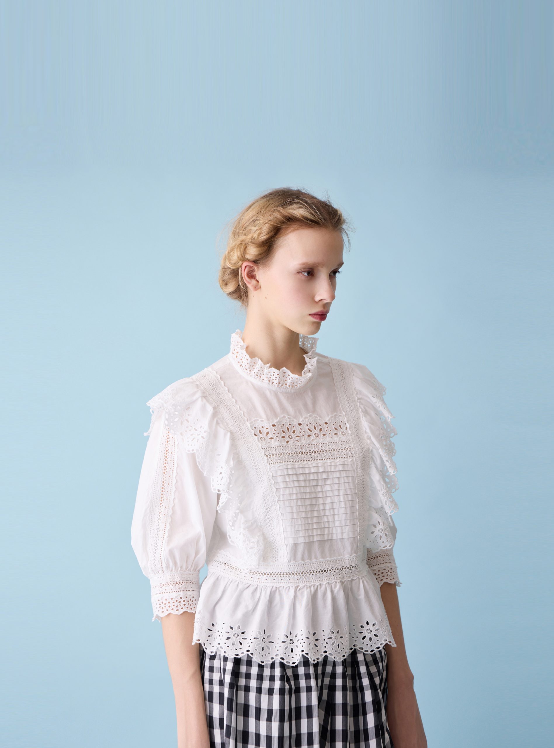 The brand’s favorite peasant style, for which items of the Victorian era are modified for the contemporary mood.